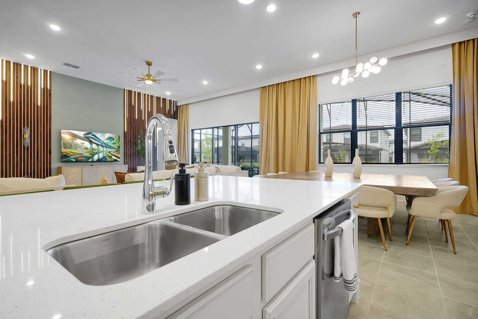 This new, gorgeous, mansion vacation home is located in the brand new housing community at Paradiso Grande, next to Sea World, 5 Minutes drive to Vista Cay and Epic Universe, 15 minutes to Universal Studios, and 10 minutes to Disney World.