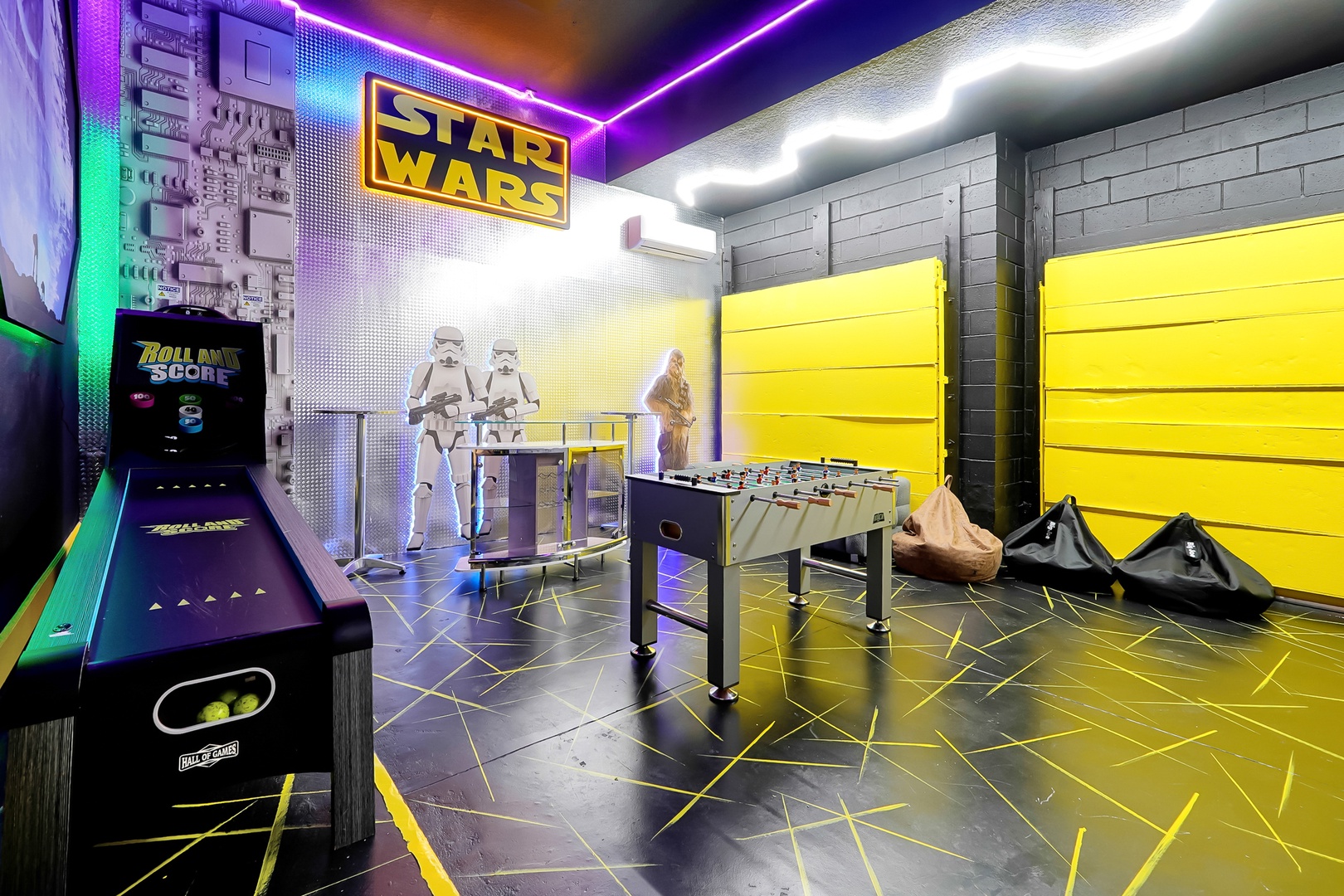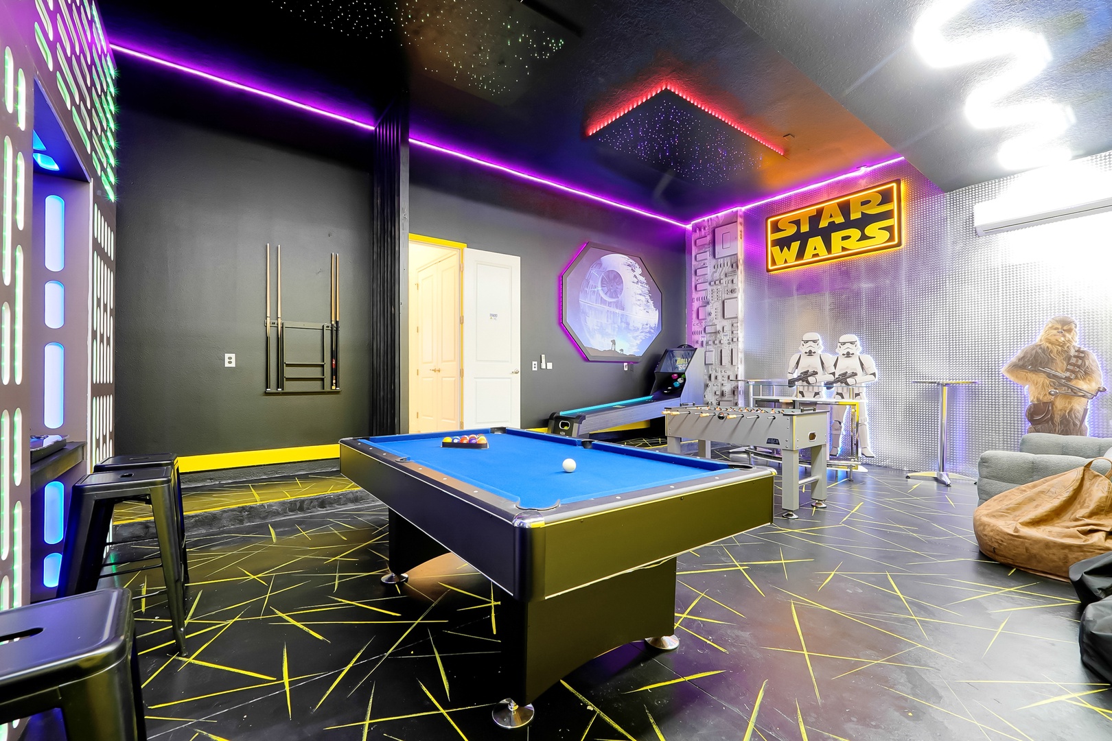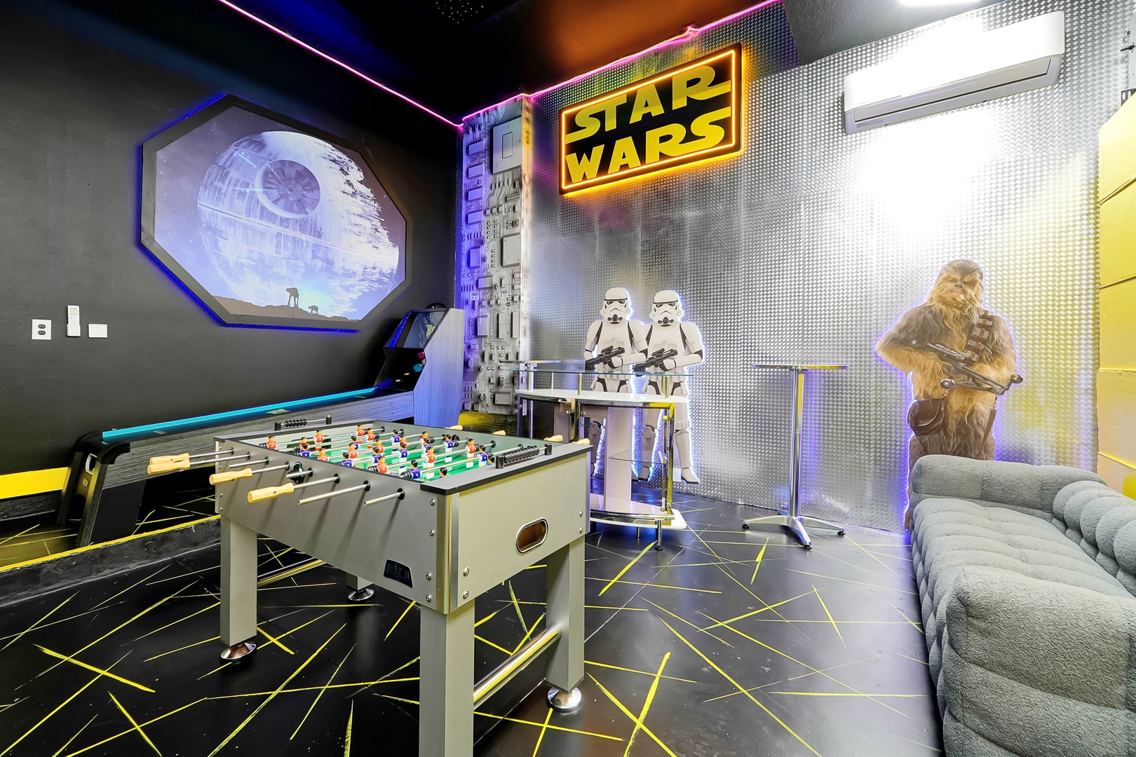 Channel your inner Jedi in our Star Wars-themed game room, featuring billiards, foosball, skee