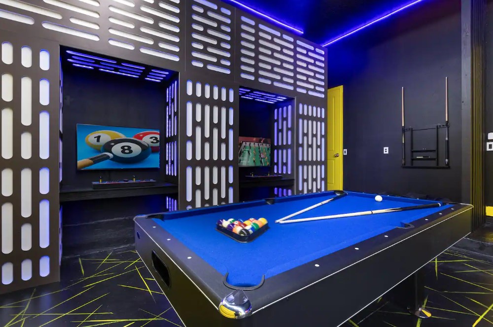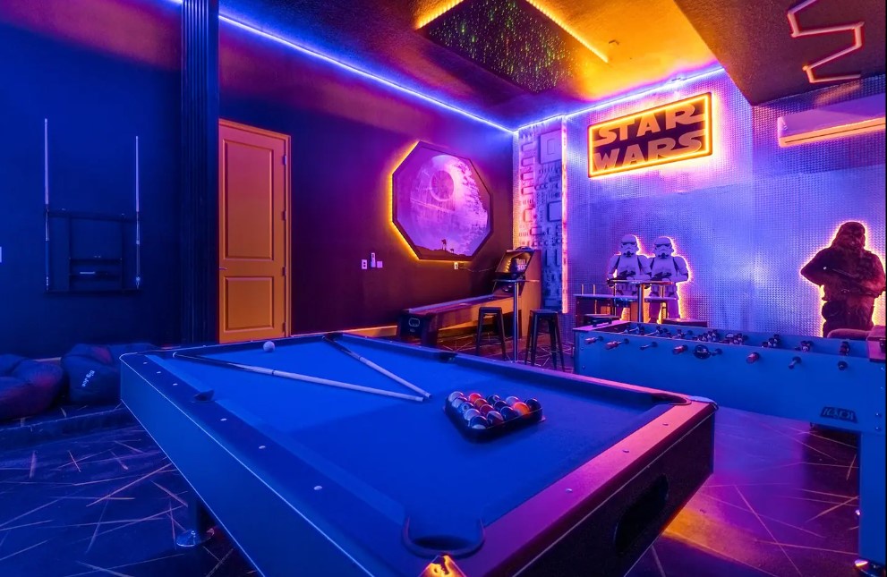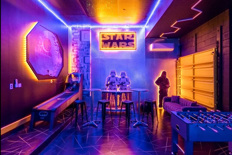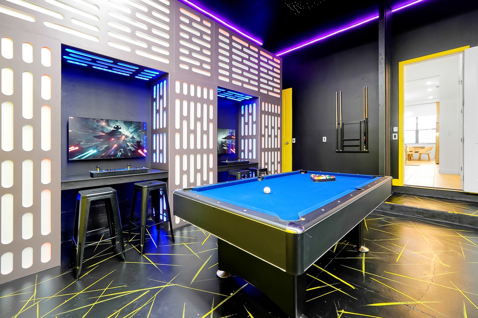 Channel your inner Jedi in our Star Wars-themed game room, featuring billiards, foosball, skee